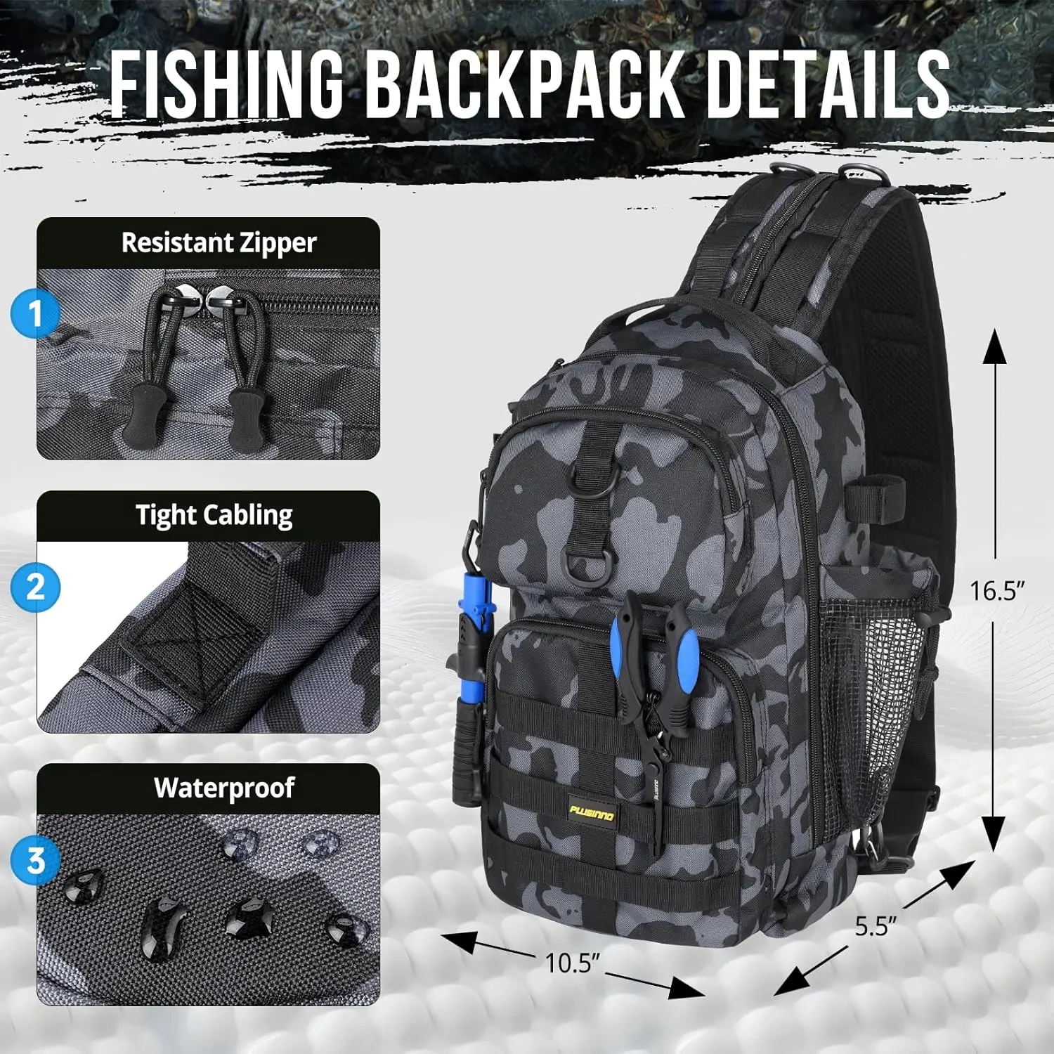 - Built-in Features for Fishing Tools,Pliers & Fish Grippers: Designed for convenience, this fishing bag features a built-in fishing pliers holder and a dedicated fish gripper slot, ensuring quick access to essential tools. With these additions, you can easily handle hooks, lines, and catches without needing extra gear. This smart combination lets you focus on enjoying your fishing experience—simple, efficient, and hassle-free.