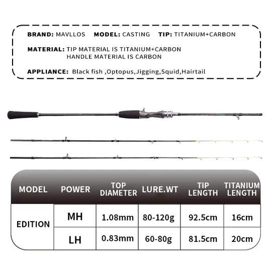 Mavllos Titanium Casting Fishing Rod Solid MH/LH Tips Lure 60-80g/80-120g Carbon Saltwater Octopus Fishing Jigging Rod