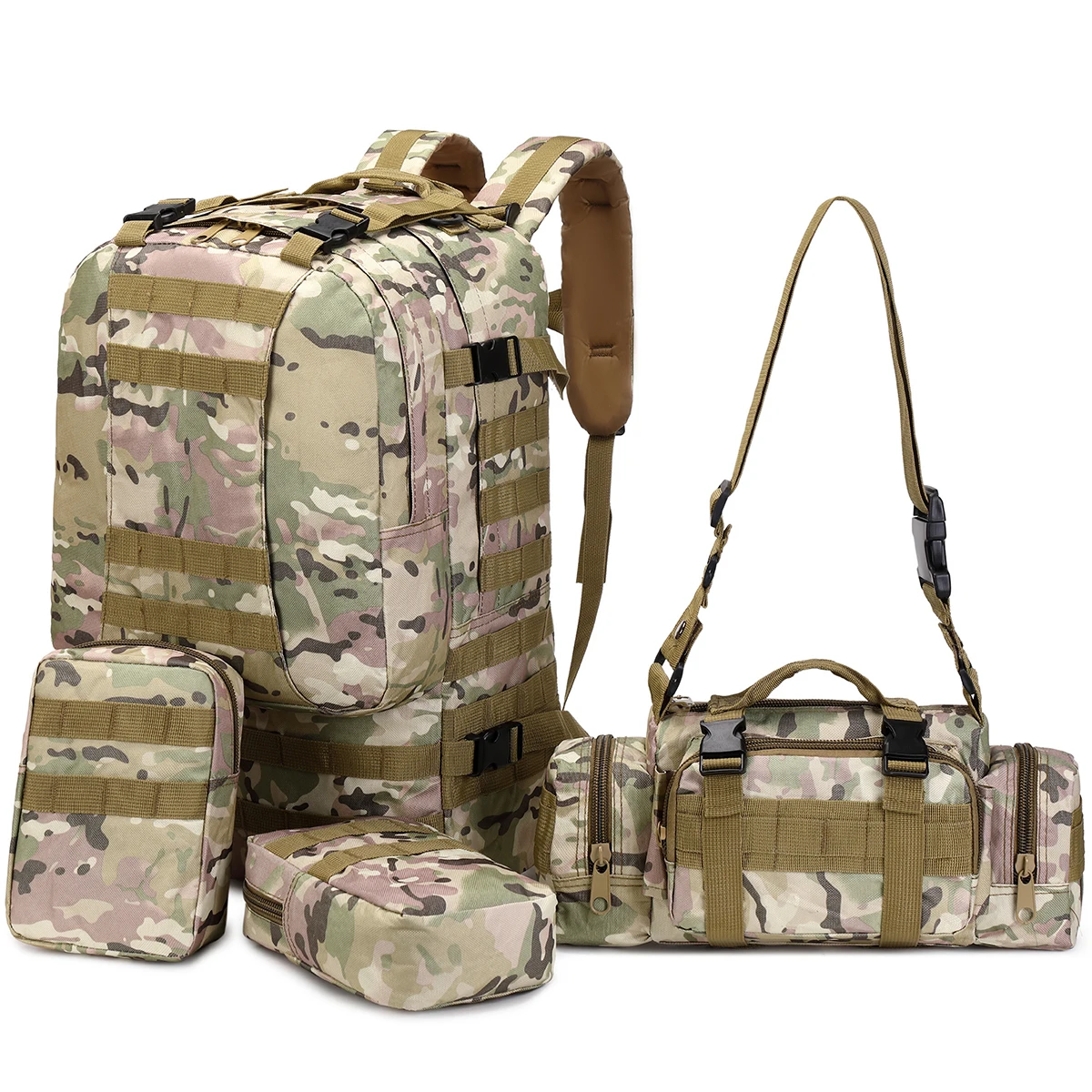 60L Large Capacity Travel Camping Hiking Mountaineering with Molle Expansion Mounted Tethered Bucket Splashproof Lightweight 4-i