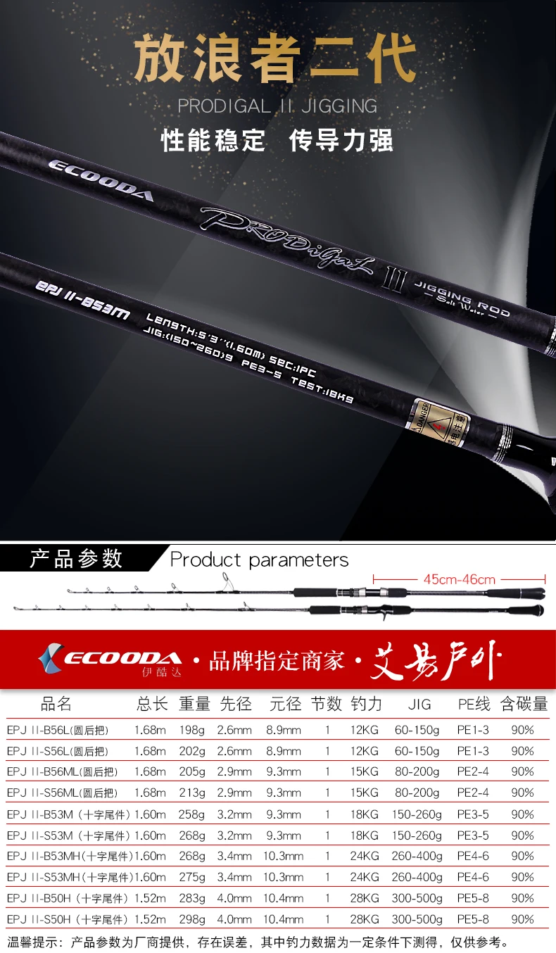ECOODA 1.52/1.60/1.68m epj single Jigging Rod Boat Rod Japan Fuji Parts Ocean Fishing Rod Carbon Spinning Casting Rod Saltwater