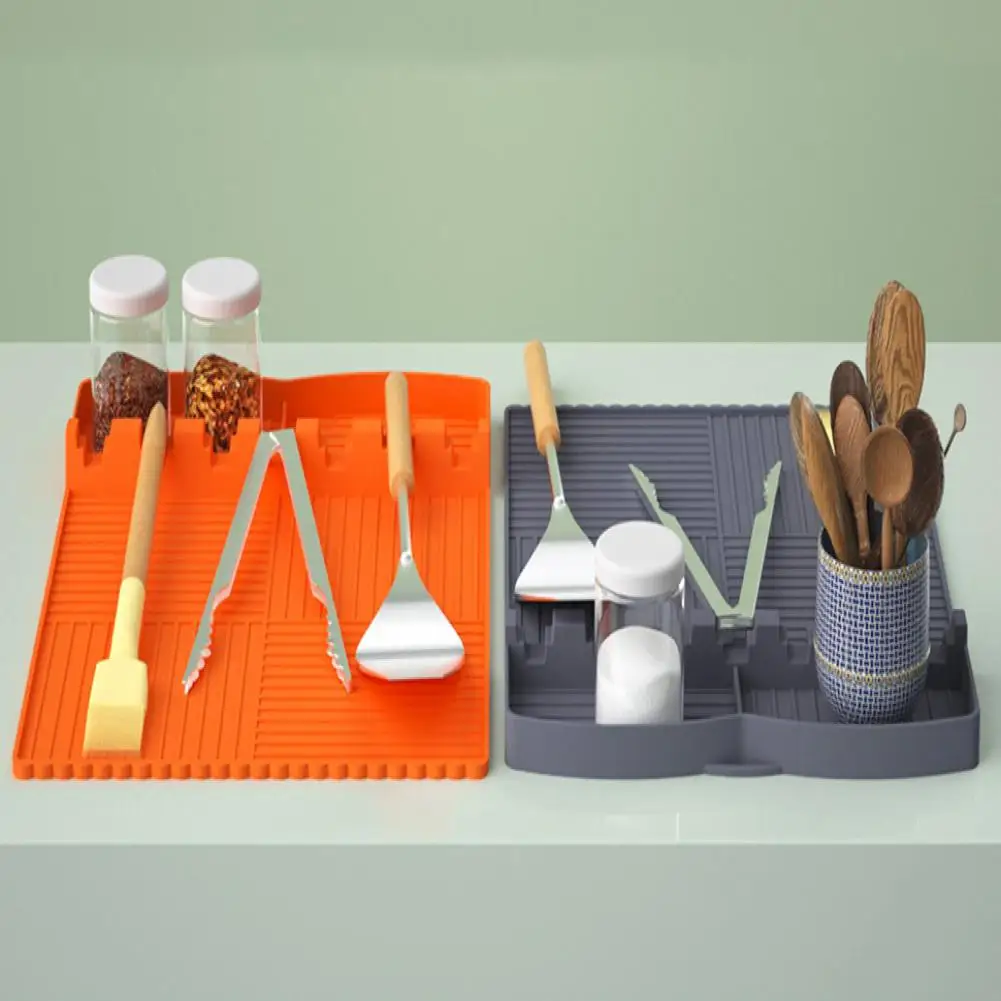 Grilling Utensil Organizer Pad Non-slip Silicone Grill Side Shelf Pad with Drip Pad for Utensils Spatulas for Blackstone for Bbq