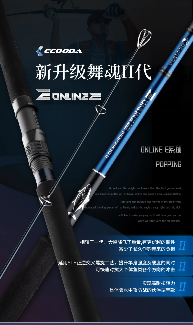 NEW ECOODA EEPR II Boating Casting Fishing Rod 2.36m-2.59m Drag Power 25kg Lure WT60-200g Popping Rod Lure Rod For Tuna GT 3