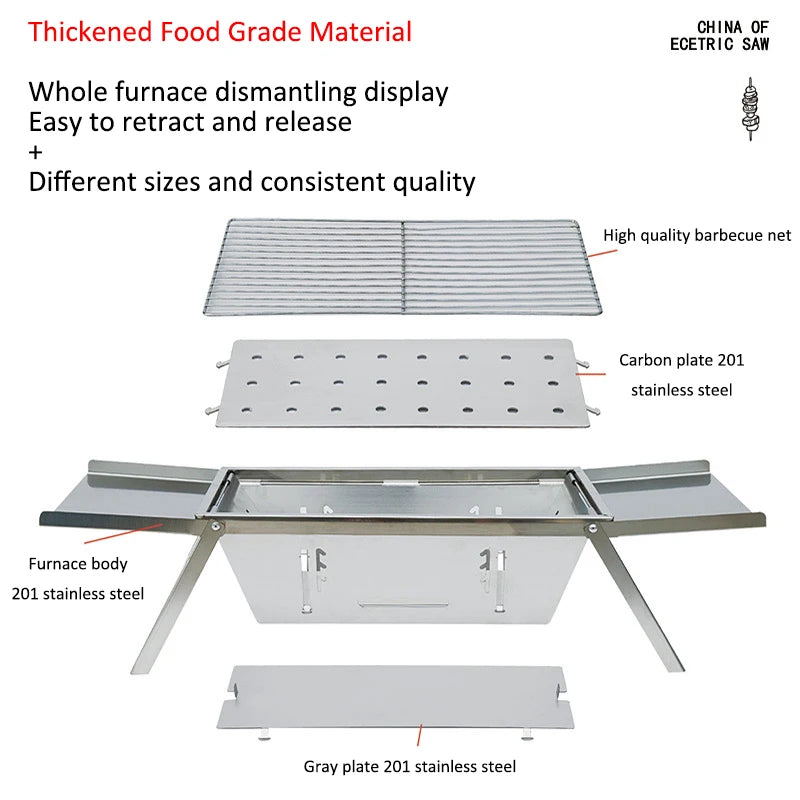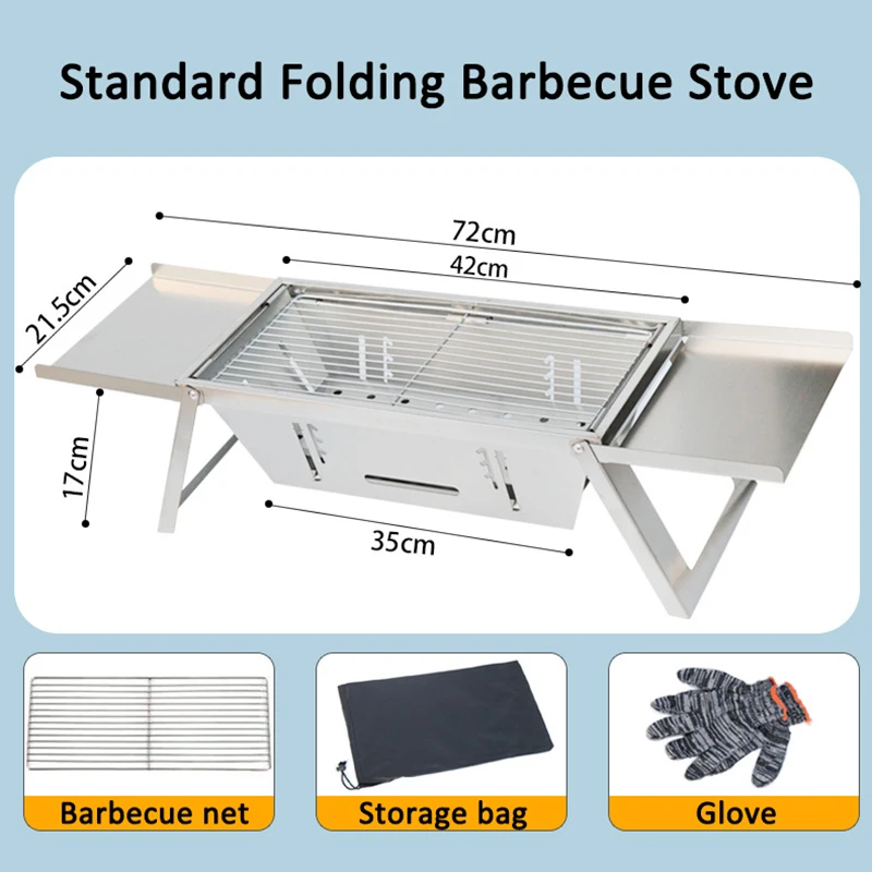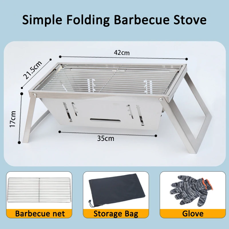 Outdoor Camping Portable BBQ Stove Thickened Stainless Steel Small Camping Stove 2-3 People Foldable In One Second